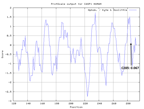 Caspase-1 (also known as interleukin 1β-converting enzyme or ICE) is expressed as a procaspase-1 zymogen that is processed into a catalytically competent form through autoproteolysis induced by protein oligomerization in vitro, but may require caspase-5 for efficient activation in vivo. It cleaves IL-1β between an Asp and an Ala, releasing the mature cytokine which is involved in a variety of inflammatory processes. Caspase-1 is important for defense against pathogens. It could cleaves and activates sterol regulatory element binding proteins (SREBPs). It also can promote apoptosis. (From Uniprot, PMID: 16511067)