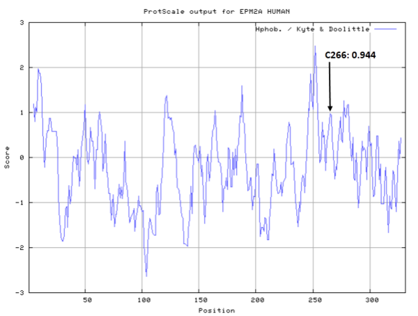 Cys266 is the active site of Laforin, act as the phosphocysteine intermediate.